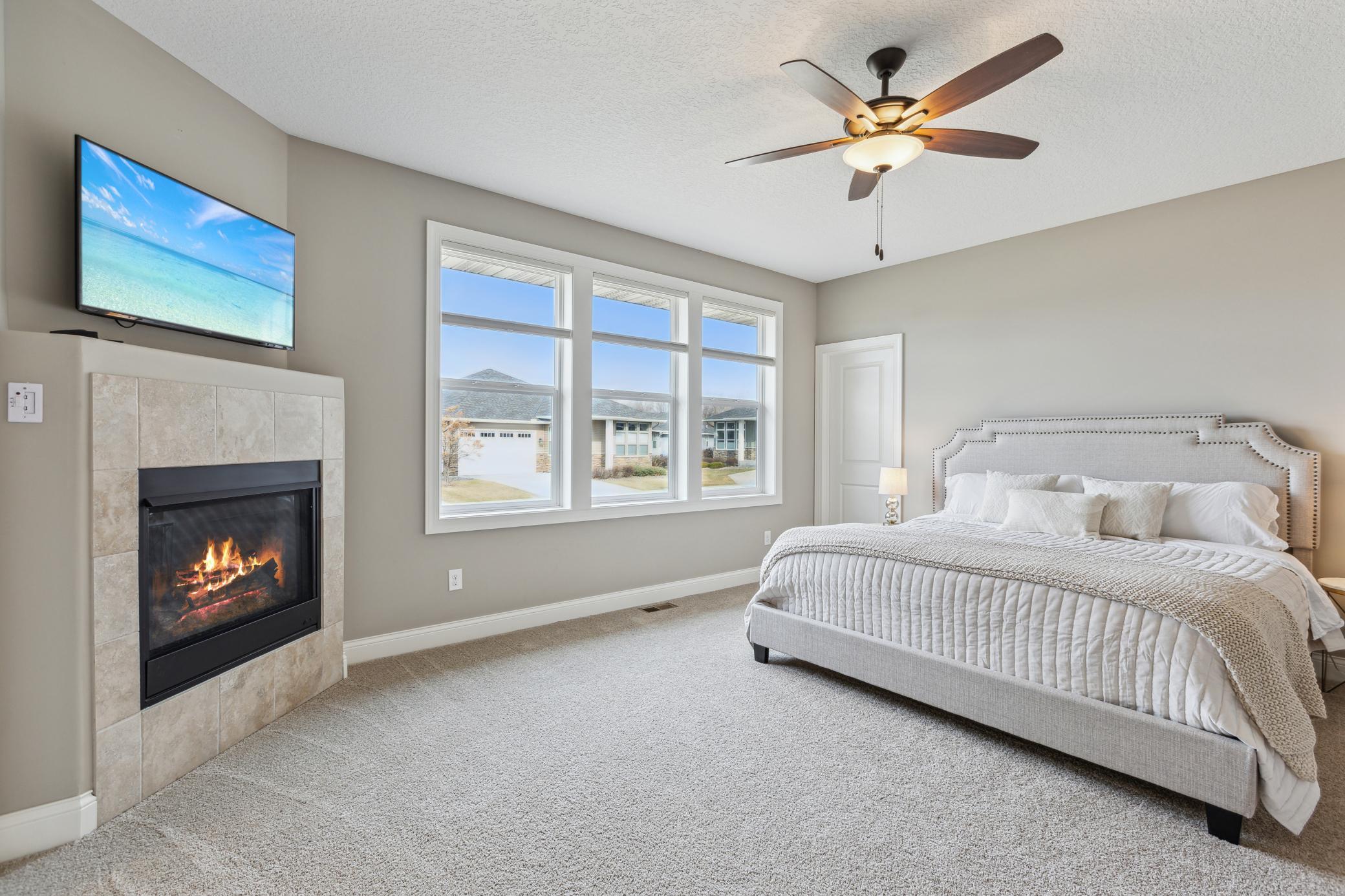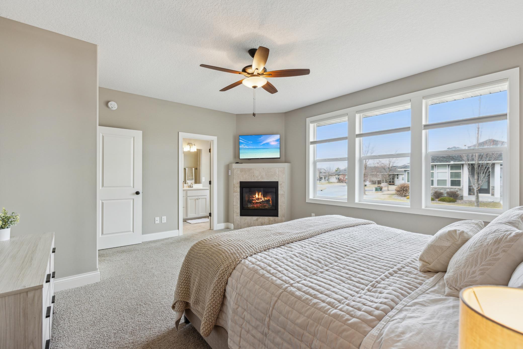 The luxurious master suite is a true retreat, complete with a gas fireplace, walk-in closets, and a spa-like bath. You'll love spending time in the amazing 3-season porch, ideal for relaxing or hosting guests. With 10' ceilings and ample storage space, this home feels both spacious and functional.
