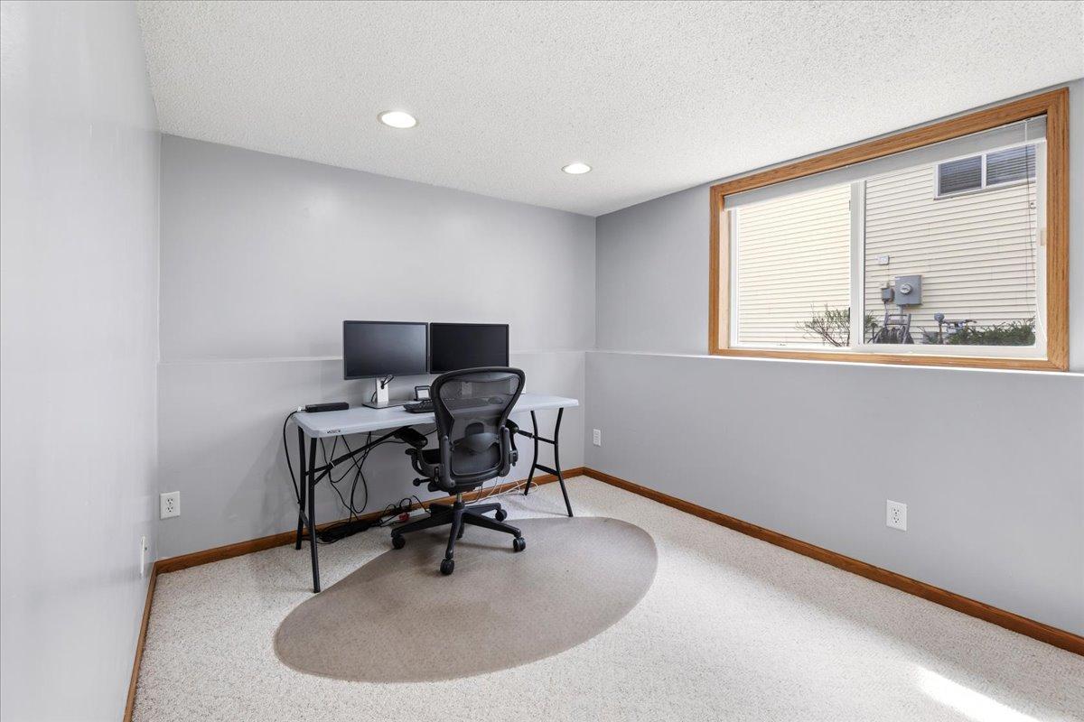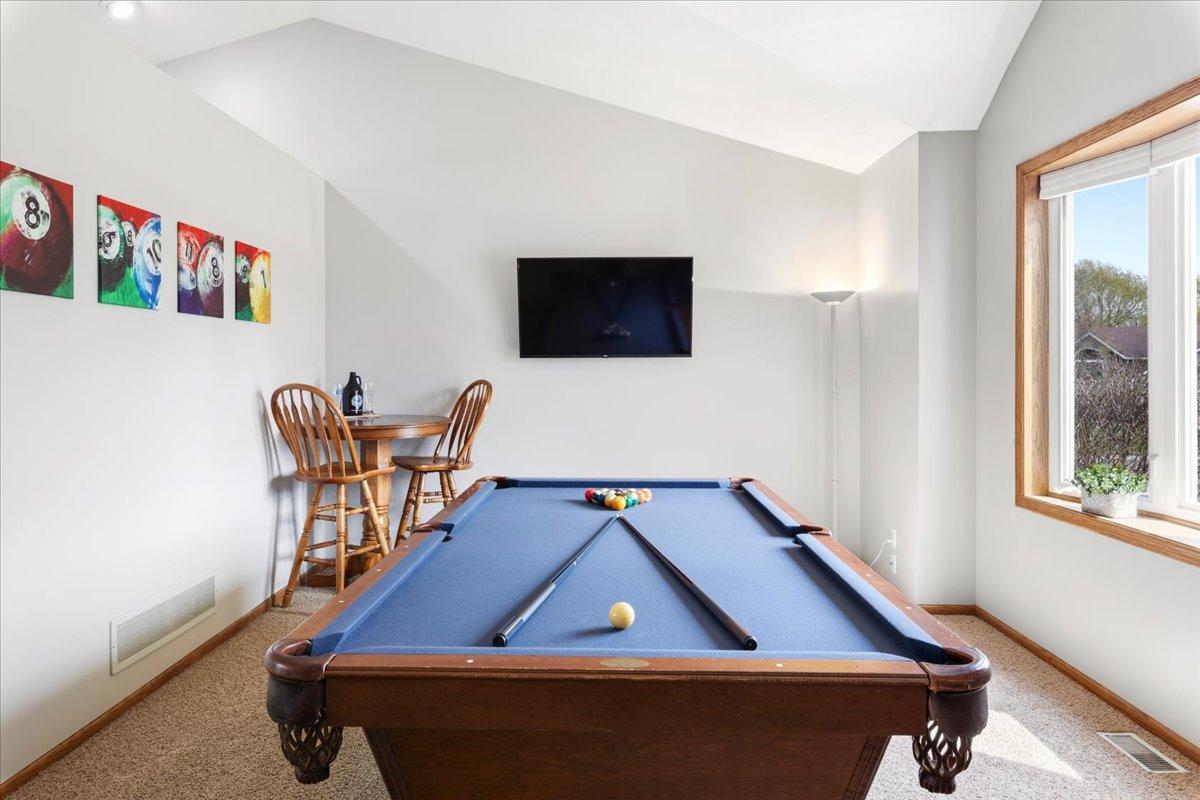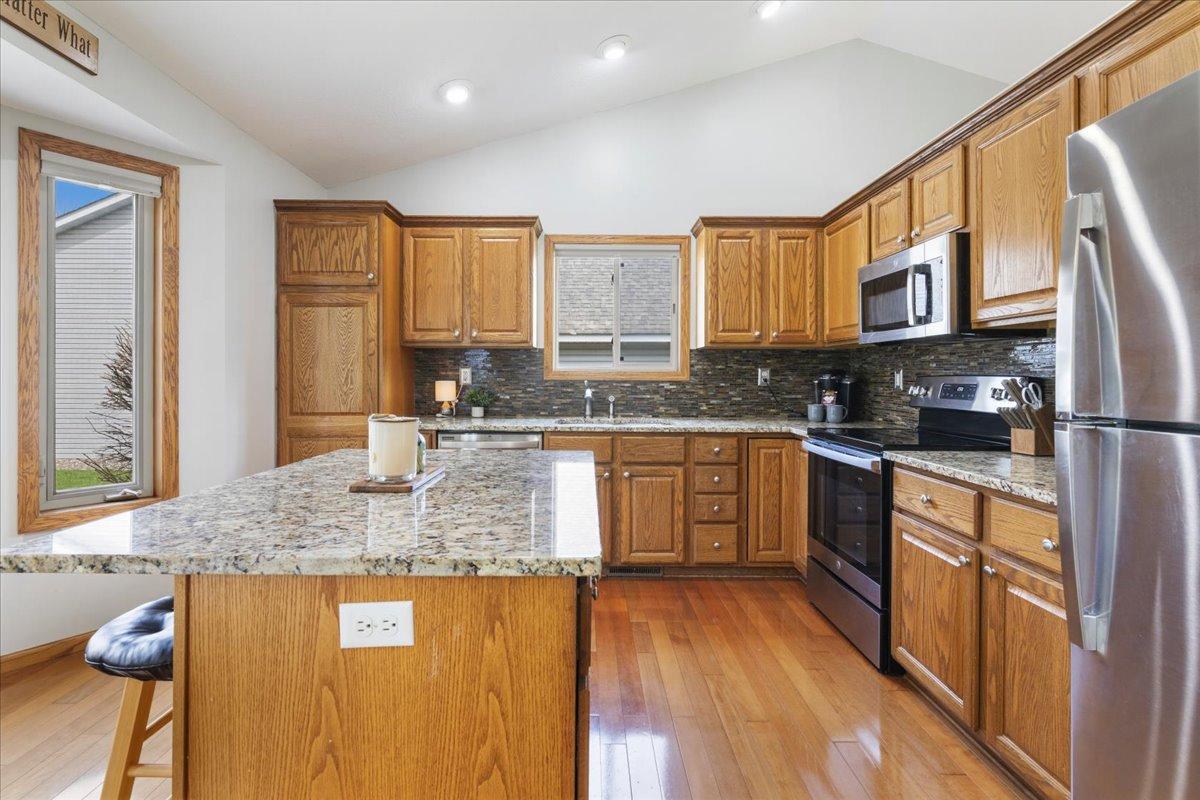 Welcome to your peaceful retreat in the heart of a well-established neighborhood! Nestled on a cul-de-sac, this beautifully maintained 4-bedroom, 3-bathroom home offers 1,970 square feet of warm, inviting living space designed for both relaxation and entertaining. As you step inside, you're greeted with an open, airy feel. The heart of the home features a modern kitchen, complete with sleek granite countertops, a center island, and a large eat in area; perfect for morning coffee or hosting holiday dinners. With two spacious family rooms, there is plenty of space for movie nights, a pool table, or a cozy reading nook. On the upper level, the primary offers a vaulted ceiling, features a walk-in closet, and a private ensuite. Two additional bedrooms finish this level. Escape to the lower level where you can enjoy cozy nights by the fireplace, the 4th bedroom, 3rd bathroom, and laundry. The magic continues outside on the stunning stamped concrete patio. It's the ideal spot for summer BBQs or quiet evenings under the stars. You can also enjoy peace of mind for years to come thanks to a brand new roof. Location is everything here; you are just a block away from the neighborhood park and minutes from local boutiques, grocery store, and favorite neighborhood restaurants. Plus, with easy access to Highway 12, your commute to the Twin Cities is a breeze. This isn't just a house; it's the backdrop for your next chapter. Come see why this charming house is the perfect place to call home!