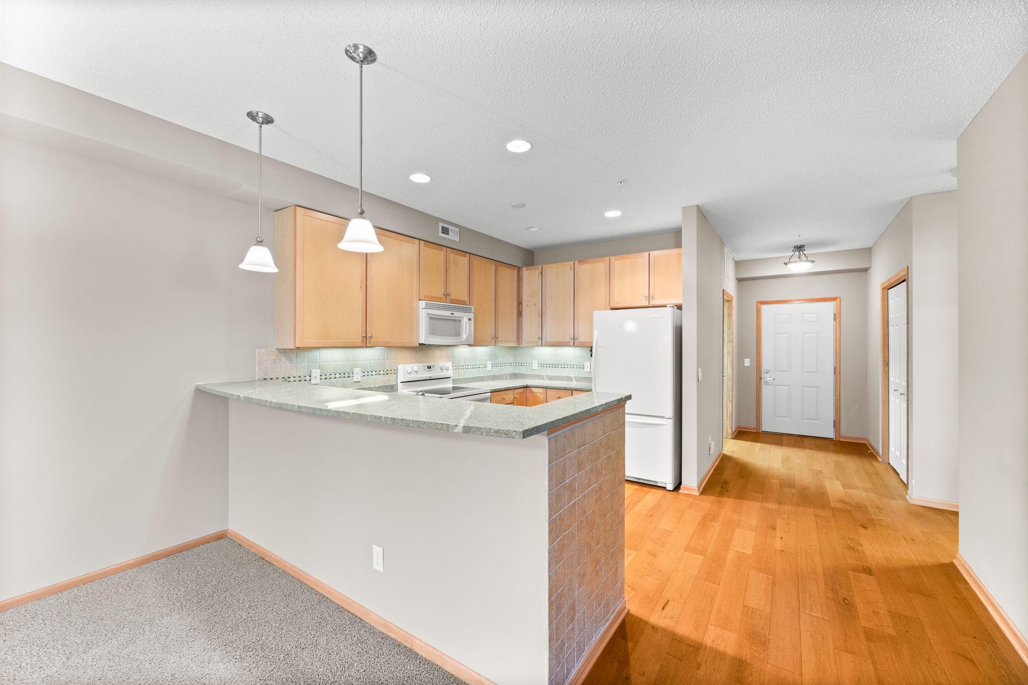 Welcome to this excellent condo in the highly desired Village By the Bay of Mound. This unit is convenient in all regards with 2 bedrooms, 2 bathrooms, all living facilities on one level, and includes elevator access to the underground heated garage with two parking stalls. Conveniently located in downtown Mound there is also direct walkability to the grocery store, restaurants, Walgreens, Hennepin County library, MetroTransit bus stop, parks, and the Dakota Regional Trail. The spacious living room features large picture windows with transom windows above and access to the private east facing balcony via sliding glass door. Adjacent to the living room is the bright and open kitchen which features granite countertops, recessed lighting, under cabinet lighting, and breakfast bar. The large master suite features a private bathroom with separate tub and shower, dual vanities, and linen closet. Also featured in the master suite is an oversized walk-in closet with built in organization system. Offered for the first time since originally built in 2007. Additional amenities include lockable storage unit on 3rd floor and community rooms for entertaining. These condos are rarely available so don't miss this one!