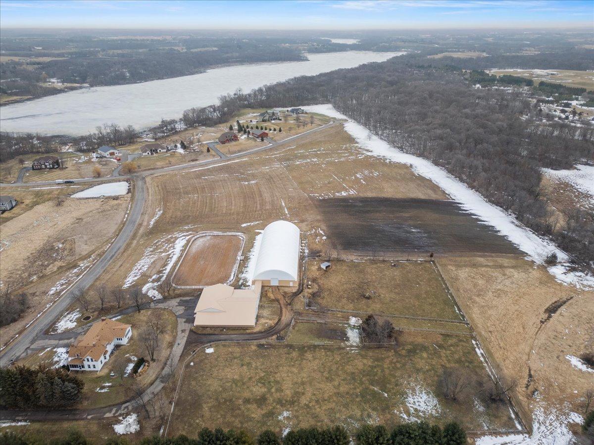The heated 6-stall barn features comfort stall mats, a grooming area, tack space, and an efficient layout for daily care. The impressive 72x180 indoor arena allows for year-round riding, while the 100x190 outdoor arena offers additional training and recreation space. Multiple fenced paddocks and turnout areas support livestock management, and approximately 13 acres of tillable ground provide flexibility for hay production, pasture, or income potential. Additional outbuilding space includes a heated 14x80 workshop and a 40x60 storage building with concrete floors, ideal for equipment, trailers, or expansion.